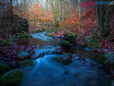 Liście, Rzeka, Kamienie, Las, Opadłe, Omszałe