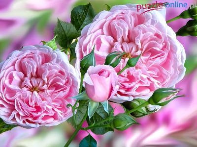 Róże, Grafika, Kwiaty, Różowe, Pąki