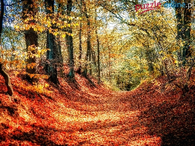Droga, Drzewa, Liście, Las, Jesień, Opadłe