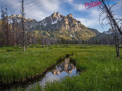 Góra McGown Peak, Stany Zjednoczone, Potok, Drzewa, Rzeka, Góry, Łąka, Stan Idaho
