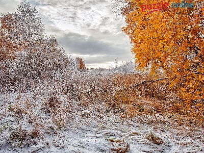 Puzzle Pierwszy, Drzewa, Jesień, Śnieg