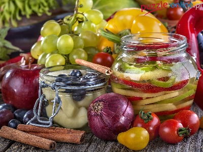 Papryka, Pomidory, Jabłko, Warzywa, Cynamon, Przetwory, Laski, Owoce, Słoiki, Cebula, Winogrono