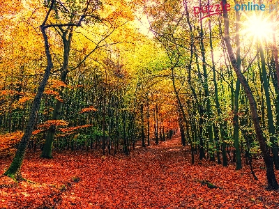 Liście, Promienie słońca, Jesień, Droga, Drzewa