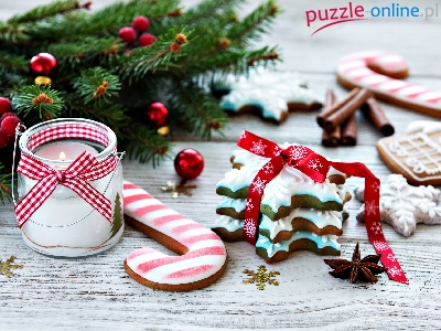 Świeca, Świerk, Boże Narodzenie, Gałązki, Słoiczek, Ciasteczka, Bombki