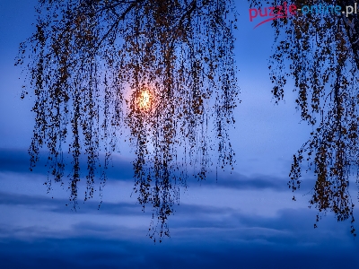 Chmury, Brzoza, Niebo, Księżyc, Gałązki