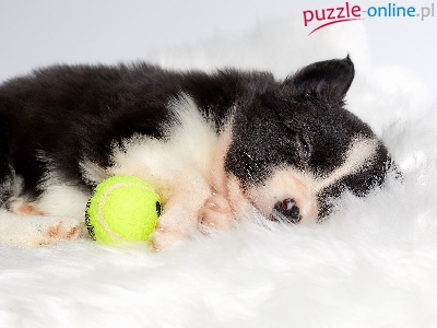 Puzzle Szczeniak, Biało-czarny, Pies, Piłeczka