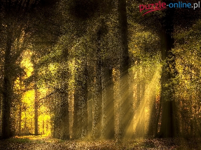 Puzzle Drzewa, Zielony, Las, Przebijające światło