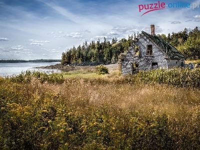 Łąka, Ruina, Jezioro, Dom, Trawa, Las