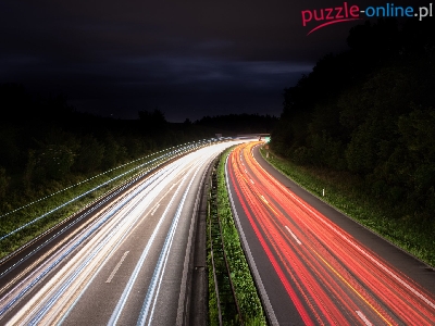 Puzzle Kolorowe, Noc, Droga, Światła