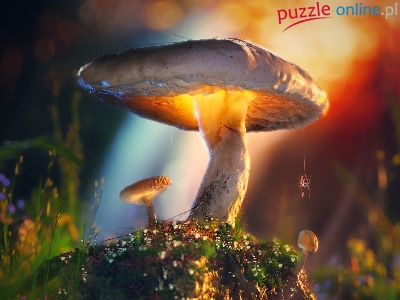 Puzzle Pająk, Grafika, Grzyb, Światło