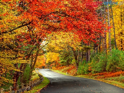 Jesień, Drzewa, Las, Droga, Kolorowe