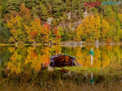 Łódka, Jesień, Jezioro, Las