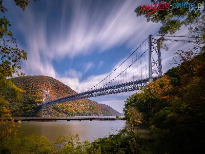 Most Bear Mountain Bridge, Stany Zjednoczone, Niebo, Purple Heart Veterans Memorial Bridge, Góry, Rzeka Hudson River, Drzewa, Nowy Jork
