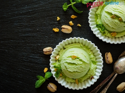 Łyżeczki, Lody, Mięty, Pistacjowe, Miseczki, Listki