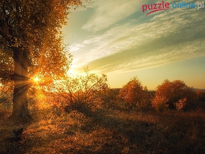 Puzzle Drzewo, Jesień, Promienie słońca, Krzewy