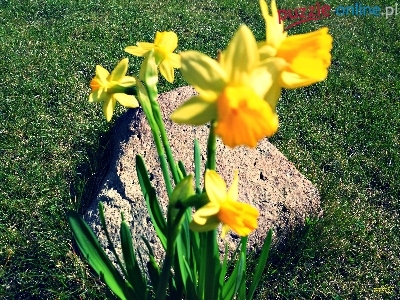 Puzzle Kamień, Żółte, Żonkile, Trawa