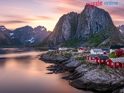Morze Norweskie, Norwegia, Skały, Lofoty, Wioska Reine, Góry, Domy, Roślinność