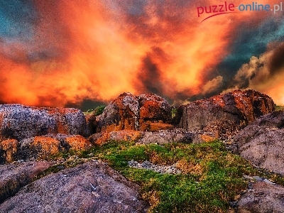 Puzzle Skały, Zachód, Słońca, Chmury