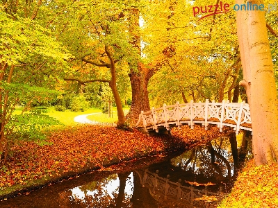 Drzewa, Rzeka, Liście, Park, Mostek, Jesień