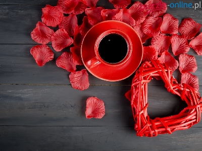 Talerzyk, Czerwona, Płatki, Kawa, Filiżanka, Serduszko