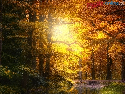 Rzeka, Drzewa, Jesień, Słońcem, Park, Rozświetlone, Droga