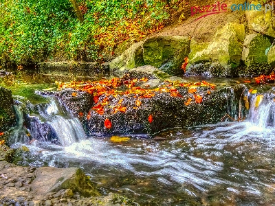Kamienie, Roślinność, Rzeka, Skała, Liście