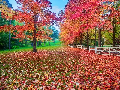 Opadłe, Drzewa, Ogrodzenie, Park, Jesień, Liście