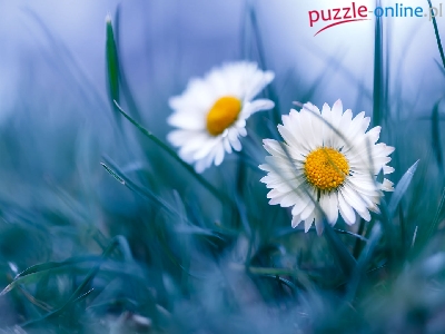 Puzzle Stokrotki, Kwiaty, Dwie, Trawa