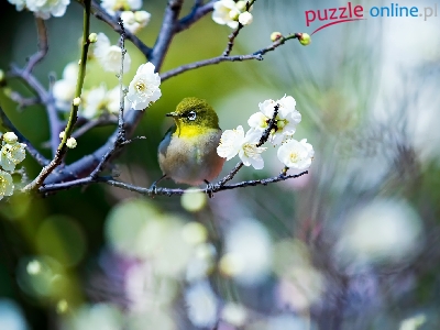 Gałązka, Wiosna, Ptak, Szlarnik japoński, Kwiaty