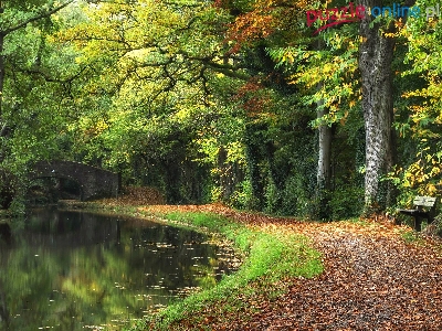 Ławka, Drzewa, Most, Park, Aleja, Rzeka