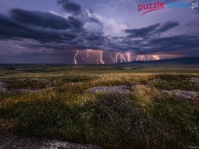 Puzzle Chmura, Burza, Pioruny, Łąka