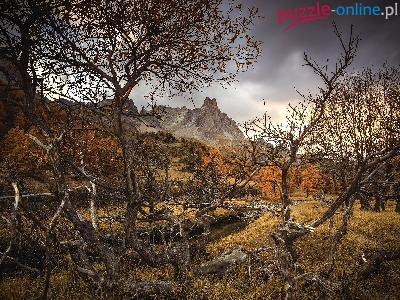 Drzewa, Trawa, Jesień, Góry, Rzeka