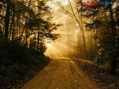 Drzewa, Słoneczne, Droga, Las, Przebijające światło