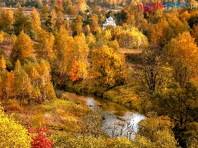 Cerkiew, Drzewa, Rosja, Jesień, Rzeka Istra, Obwód moskiewski