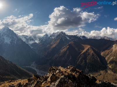Szczyt Tikhtingen, Rosja, Chmury, Kaukaz, Szczyty, Góry, Wąwóz Chegem, Kabardo-Bałkaria