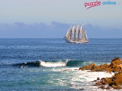 Puzzle Kamienie, Żaglowiec, Ocean Atlantycki, Fale