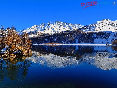 Szwajcaria, Wyspa, Odbicie, Góry, Jezioro Bergsee, Zima, Drzewa