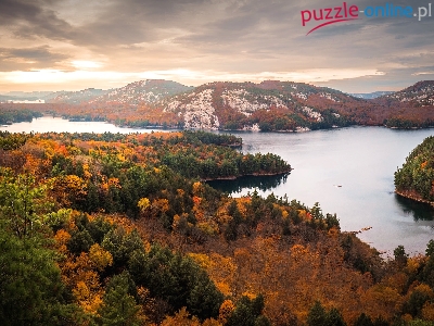 Drzewa, Góry, Kanada, Jesień, Jezioro Killarney, Ontario
