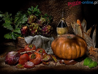 Dynia, Persymona, Butelka, Warzywa, Karczochy, Liście