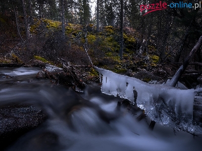Lód, Gałęzie, Las, Rzeka, Oblodzone
