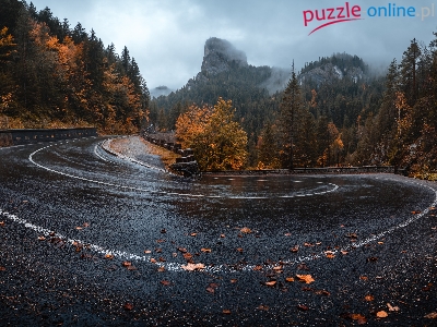 Drzewa, Jesień, Droga, Zakręt, Góry