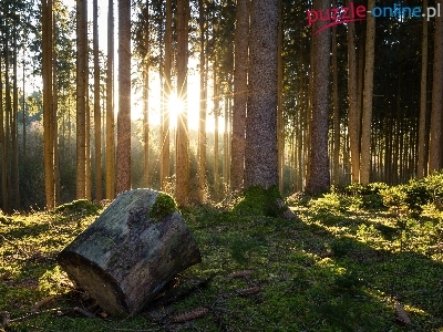 Kłoda, Promienie słońca, Las, Drzewa, Kloc
