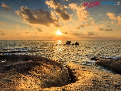 Puzzle Chmury, Morze, Wschód słońca, Skały