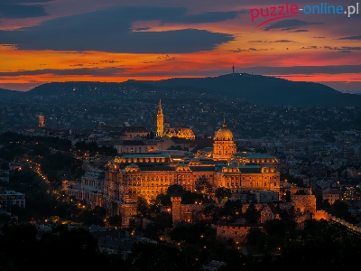 Wzgórza, Oświetlony, Węgry, Zachód słońca, Zamek Królewski, Budapeszt