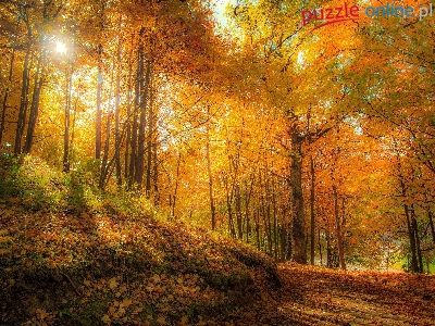 Ścieżka, Pożółkłe, Jesień, Las, Drzewa, Roślinność