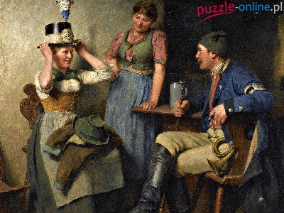 Malarstwo, Stół, Mężczyzna, Hugo Wilhelm Kauffmann, Kobiety, Obraz, Dwie, Kuchnia