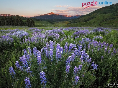Kwiaty, Wzgórza, Lato, Góry, Fioletowe, Łubin
