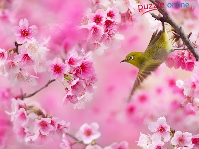 Gałązki, Szlarnik, Kwiaty, Ptak, Okwiecone, Różowe