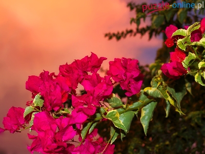 Puzzle Bugenwilla, Różowe, Kwiaty, Gałązka