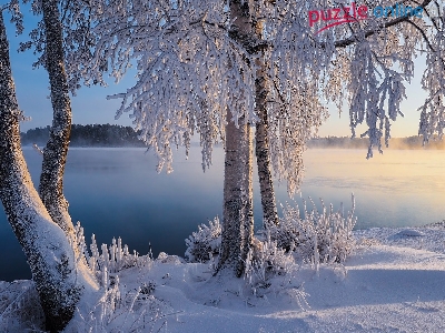 Oszronione, Poranek, Mgła, Zima, Rzeka, Drzewa